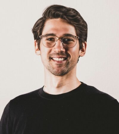 A young woman with long, wavy hair is seen from the back. She is wearing black lingerie with sheer, polka dot details. The background is urban, featuring an archway and a railing with a blurred car and building.